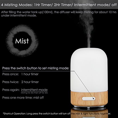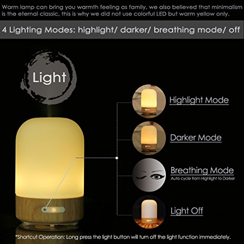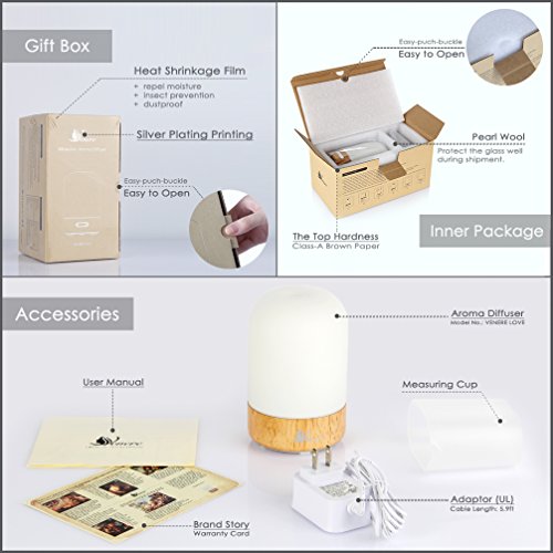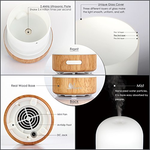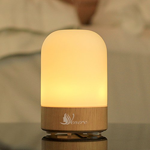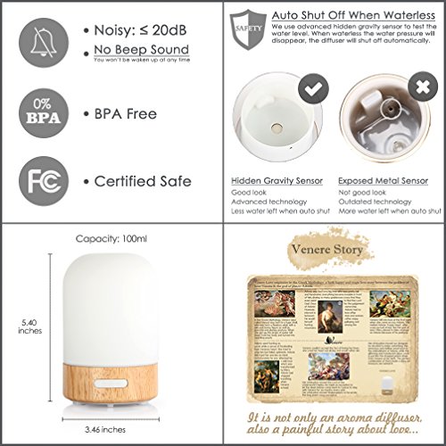 Venere Essential Oil Diffuser 100ml Ultrasonic Cool Mist Humidifier Real Wood Base and Glass Cover, No Beep Sound Single Warm LED Auto Shut-off Aroma Atomizer Aromatherapy Air Purifier for Home Office
