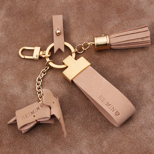 헤이민(HEIMIN) 천연소가죽 키링 누벅 연베이지