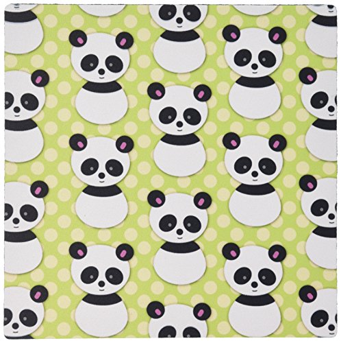 3dRose LLC 8 x 8 x 0.25 Inches Mouse Pad, Cute Panda Bear with Lime Green Polka Dots (mp_26432_1)
