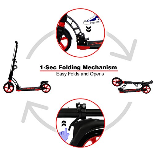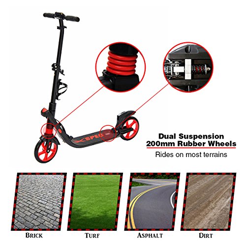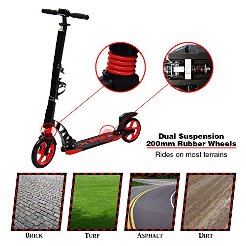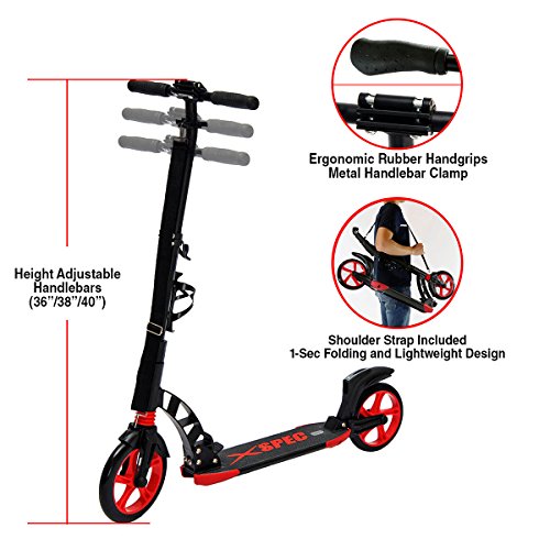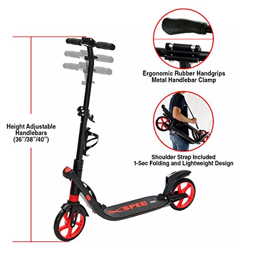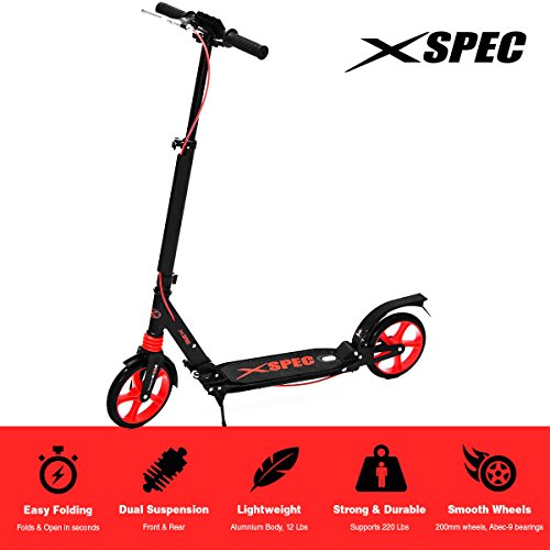 -. Title : Xspec Folding Adult Kick Street Scooter with Full Suspension & Rear Wheel Braking System - 220lb Capacity - Adjustable Handle Bars, Lightweight Foldable with Carrying Strap, Aluminum Frame