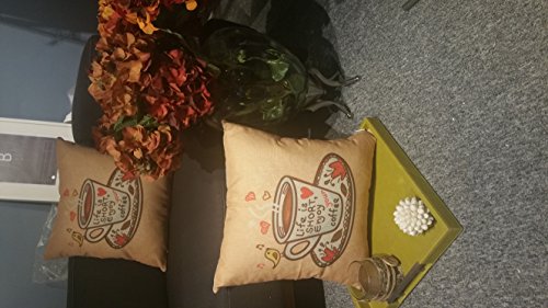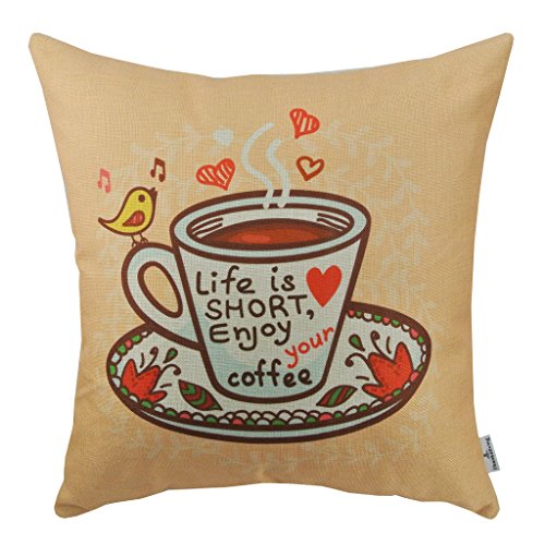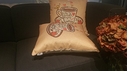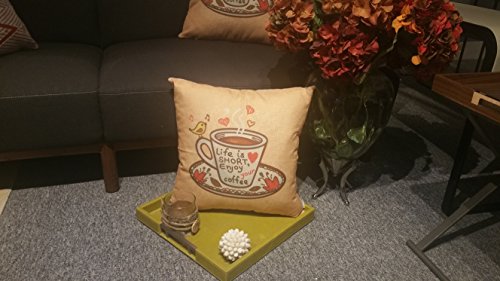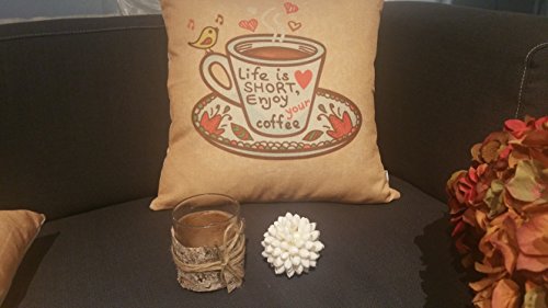 Thanksliving Decorative 1 Pc Enjoy Coffee Time Pillow Covers 18 x 18 Inch/45 x 45 cm, Life Is Short Enjoy Your Coffee