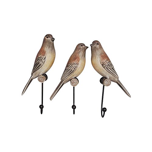 Comfy Hour 8" Single Key Hook Set Of 3 Birds Wall Hanger, Brown