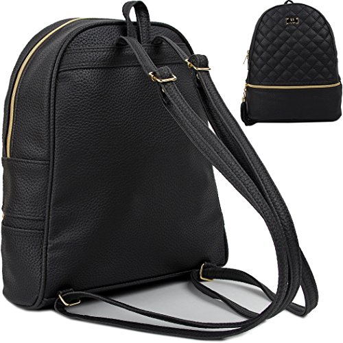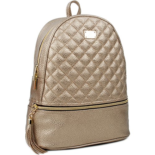 Caution: This is a fashion backpack, not a student backpack. This backpack is not large enough to hold a binder or laptop. But, It's big enough for 10 inch tablet and I can fit a folder in it as well. It's Simple, cute and feminine type of small bag. (11.8in(H) * 9.5in(W) * 3.95in(D), weighs 0.76LB, Handle drop:2.2in). Artificial leather quilted backpack with zipper closure.