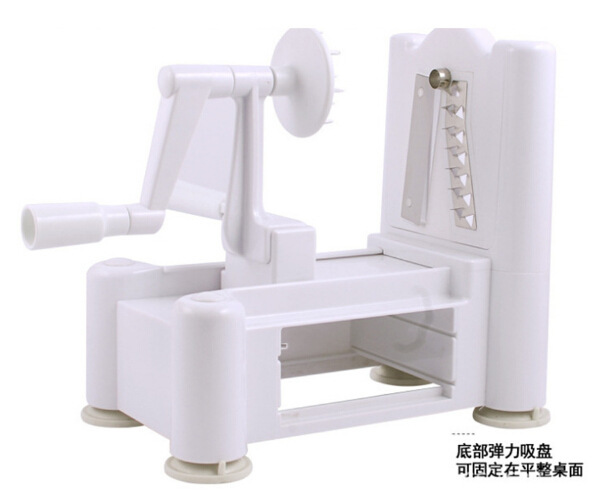 The Spiral Vegetable Sliceru0026nbsp;creates spiral cuts and vegetable or fruit noodles in seconds. The frame and blade plates are constructed of very high-quality, impact-resistant ABS plastic that is BPA-free, and the blades are made of stainless steel. It has four powerful suction feet that are fitted with tabs for easy release, and does not require an outlet connection or batteries.