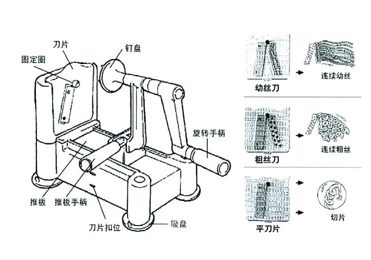 - Three stainless steel blades:Use with a variety of fruits and vegetables including apples, potatoes, carrots, cucumber, zucchini and more