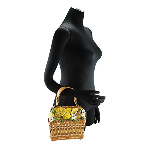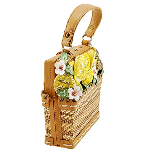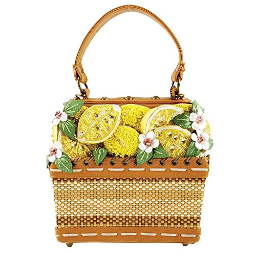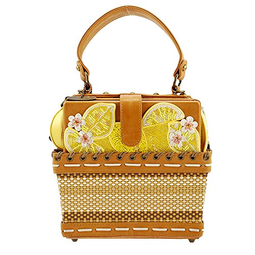 MARY FRANCES Fresh Squeezed Embellished Lemon Basket Novelty Top Handle Bag