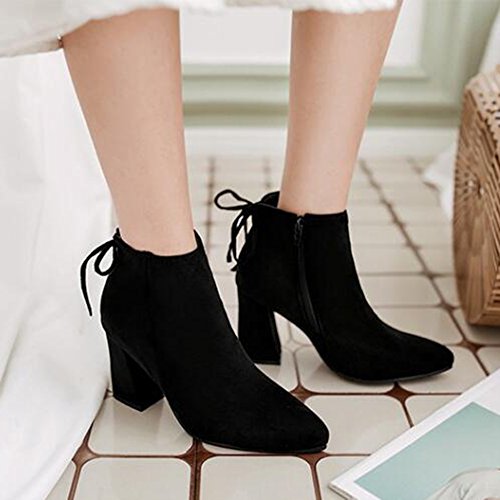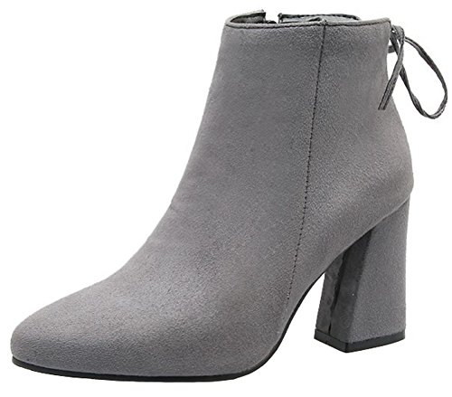 (Mofri)/Women's/Boots/DIRECT FROM USA/Mofri Women's Dressy Faux Suede Bow Side Zipper Short Boots Pointed Toe High Chunky Heel Ankle ...