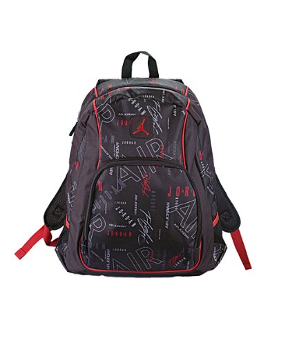-. Brand : Jordan -. Department : Boys -. Feature : Padded back panel with stitched "Jumpman";Padded adjustable curved shoulder straps / Top carry handle;Jumpman metal etched zip pulls;backpack fits a laptop up to 15" inches / 2 side mesh pockets; material: / 100% polyester -. Label : Jordan -. Manufacturer : Jordan -. MPN : 1223 058 -. PackageQuantity : 1 -. PartNumber : 1223 058 -. ProductGroup : Sports -. ProductTypeName : OUTDOOR_RECREATION_PRODUCT -. Publisher : Jordan -. Studio : Jordan -. Title : Jordan Boys Black & Red Print Backpack