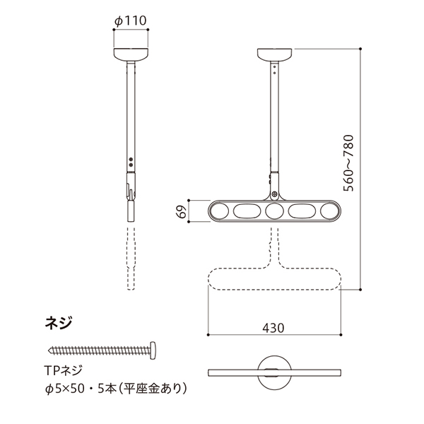●スペック:全長560~780mm 目安荷重20kg