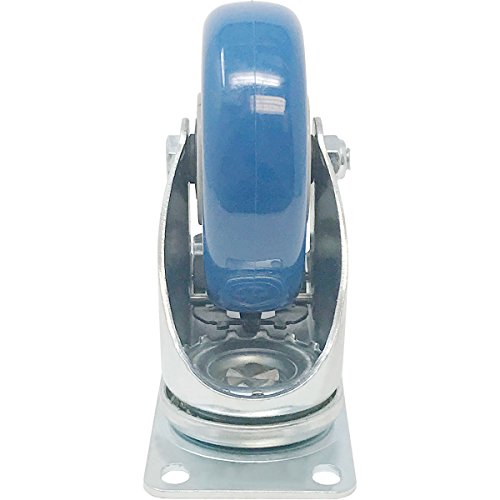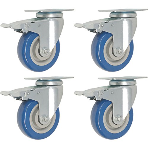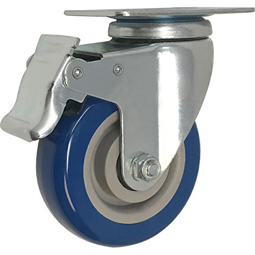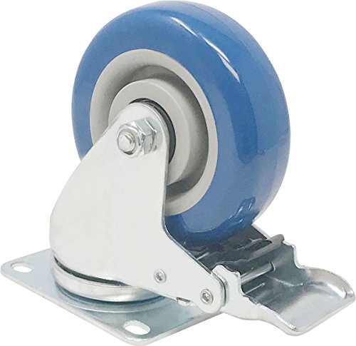 4 Pack Caster Wheels Swivel Plate Stem Brake Casters On Blue Polyurethane Wheels 880 Lbs (3 inch with Brake)