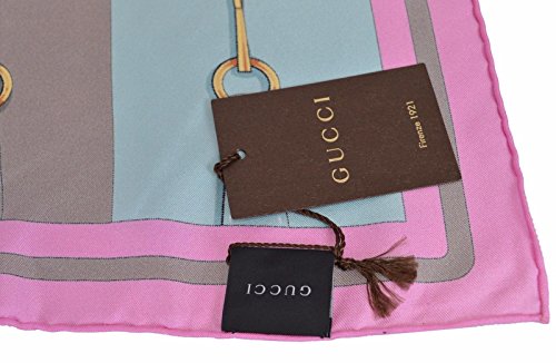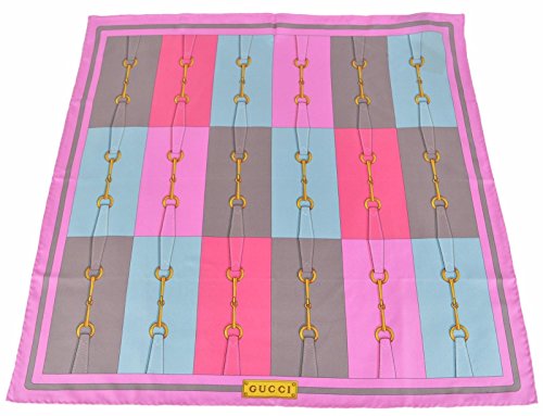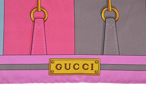 100% Silk Multicolor Horsebit Belt Pattern Gucci Script Measures 27" x 27" Made in Italy Condition: New with Tags What is Included: Scarf & Tags Color: Multi