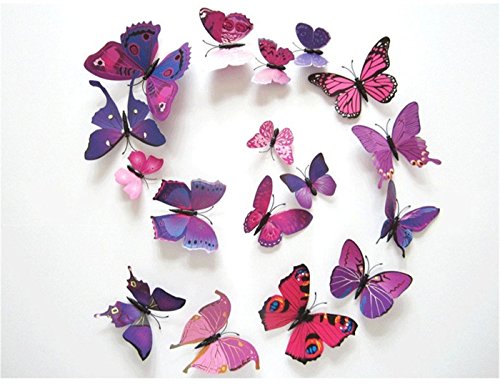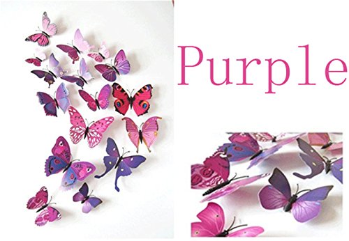 HAKDAY 24 PCS 3D Butterfly Wall Stickers Crafts Butterflies,12 PCS for Blue and 12 PCS For Purple