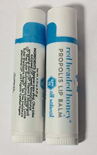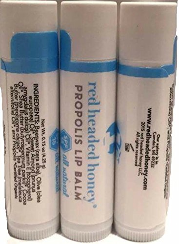 -. Binding : Misc. -. Brand : red headed honey -. EAN : 0866379000276 -. Feature : Super healing properties of antibiotic honeybee Propolis for the most troubled lips. / Works great to speed up the dimishing of cold sores, cracked, dry and super stressed Lips / No Lareth Sulfates, Propylene Glycols or Aluminum ingredients. Proudly made in the USA in small batches to maintain quality. / We use the most minimal processing possible to provide the most benefits available from our sustainably harvested honeybee propolis. / Works great as a cutile cream or spot diminisher for acne, redspots and other skin issues. Safe to use on the whole family if no irriation to tea tree oil is present. -. IsAdultProduct : 0 -. Label : red headed honey -. Manufacturer : red headed honey -. MPN : LB1003 -. PackageQuantity : 3 -. PartNumber : LB1003 -. ProductGroup : Beauty -. ProductTypeName : BEAUTY -. Publisher : red headed honey -. Studio : red headed honey -. Title : red headed honey's Propolis Lip Balm-Natural Healing Power of the Hive combined with Organic Tea Tree Oil! -. UPC : 866379000276