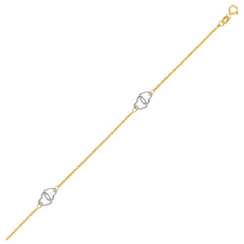 -. Title : 14K Two Tone Gold Entwined Heart Stationed Anklet