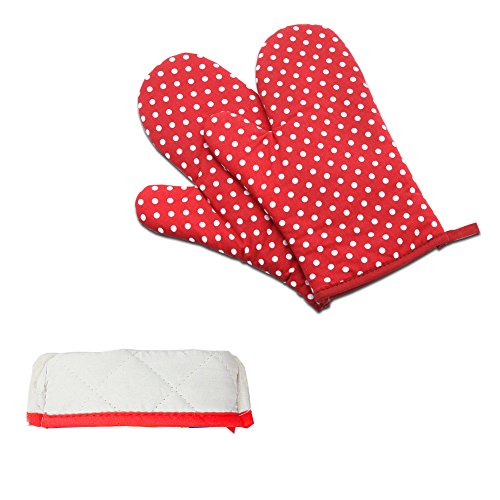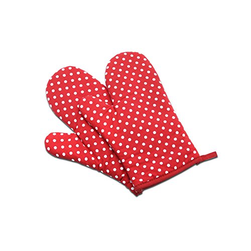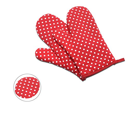 Efivs Arts Oven Mitt, Cotton, Heat Resistant and Ergonomic Kitchen Cooking Mitt Glove Classic(2 pack,Red)