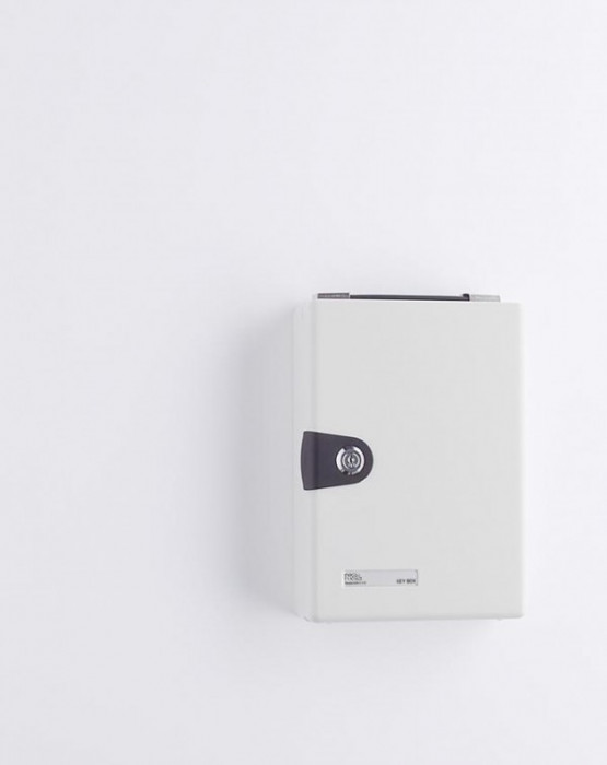 壁掛けや持ち運びもできる、シンプルなキーボックスです。