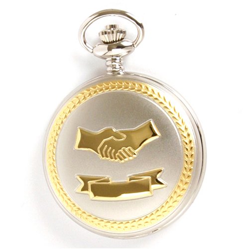 -. Feature : Pocket Watch & Chain Present in Wood Box / Great Way to say "Thanks" for all your Hard Work / Satin Finish Silvertone and Goldtone accents / Place for Engravable Initials / Great Gift