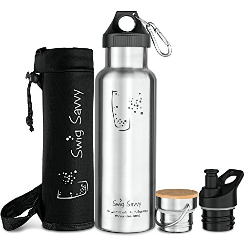 The Swig Savvy Stainless Steel Water Bottle is a versatile, premium product, combining a tough design, BPA free materials and three super convenient interchangeable lids in a single package. Click "Add to Cart" now!