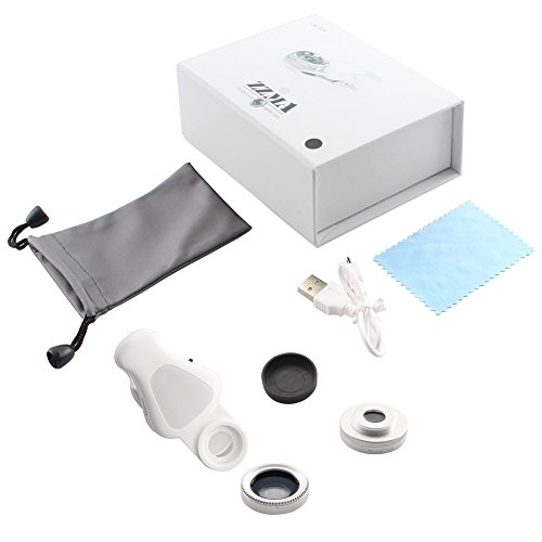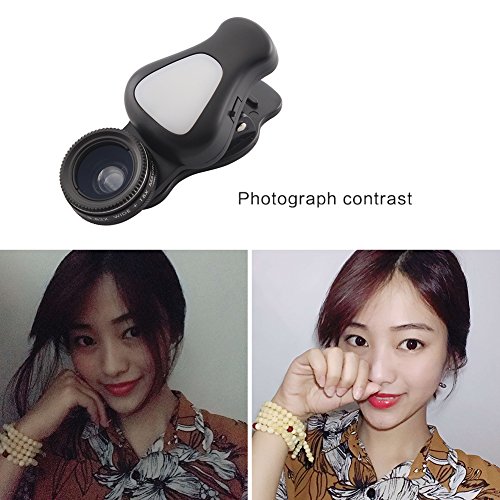 3 in 1 Cell Phone Lens with LED Flash Light, 15X Macro Lens & 0.62X Wide Angle Lens& 205 Degree Fisheye Lens , 2 Adjustable Brightness Fill Light for iPhones, Samsung, Moto, HTC, Sony and More
