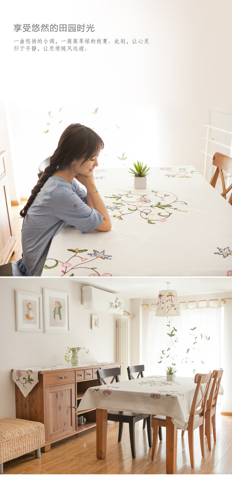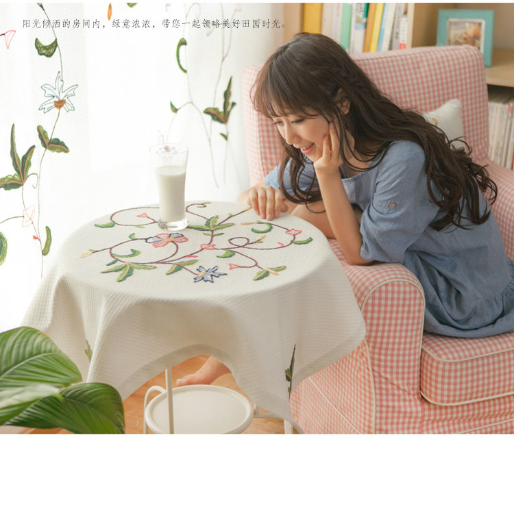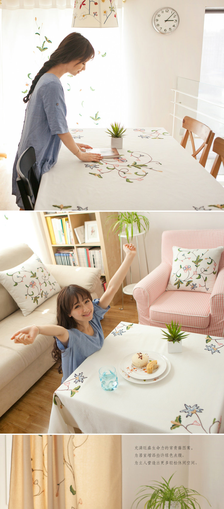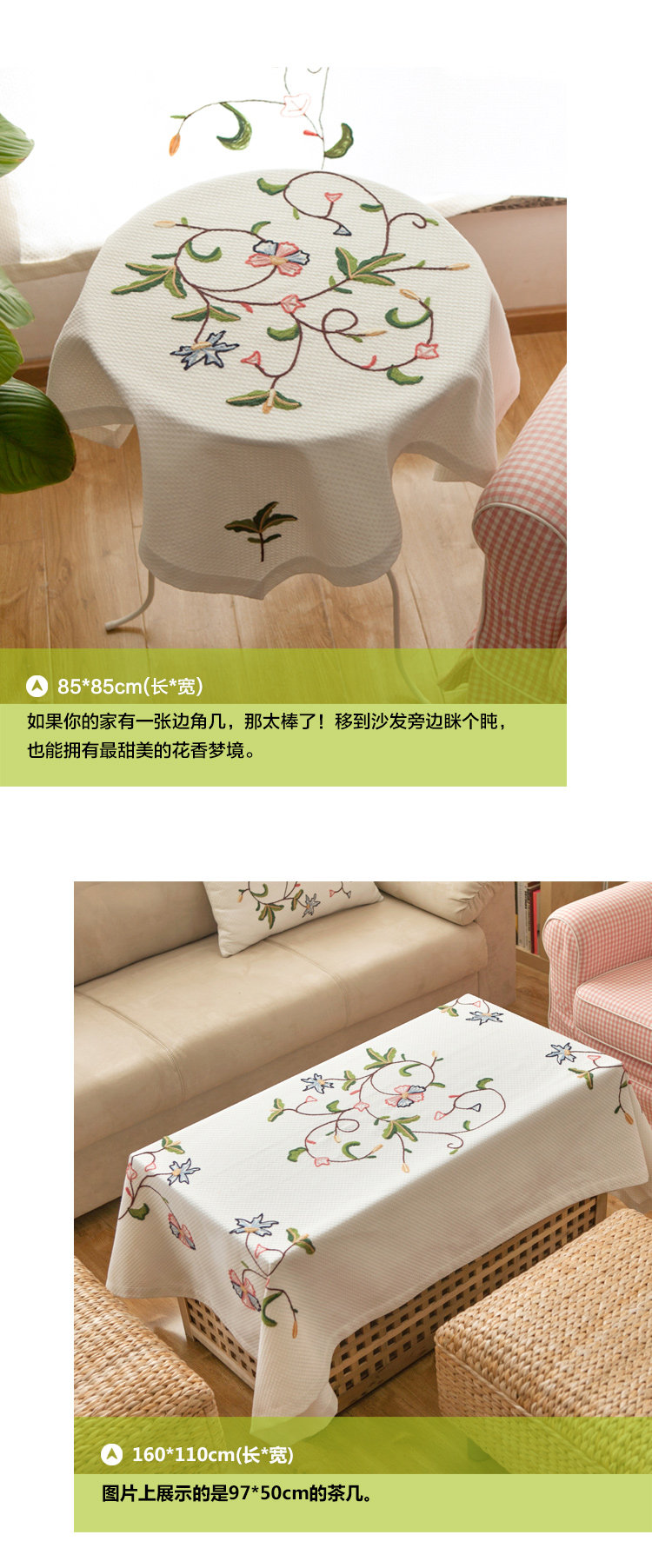 常青藤花草田园茶几桌布 美式乡村刺绣布艺桌布 电视多用防尘盖布