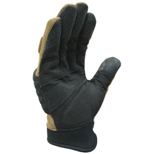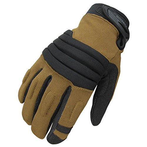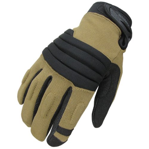Studio : Condor Outdoor Publisher : Condor Outdoor Binding : Office Product Product Description Synthetic leather palm with reinforcement and padding. Two-way stretch spandex backhand for flexibility and breathability. Hook loop cuff closure with molded rubber tab. Silicone anti-slip treatment finger tips to maximize grip. High density padded knuckle helps absorb shock from impact. 0