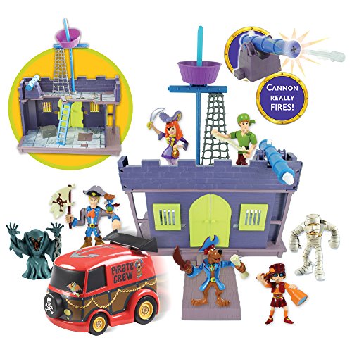 -. Feature : 7 action figures total - (1) Captain Scooby Figure, (1) Pirate Fred Figure, (1) Pirate Daphne Figure, (1) Pirate Shaggy Figure, (1) First Mate Velma Figure, (1) Phantom Figure, (1) Mummy Figure / Additional Contents: (1) Pirate Fort, (1) Cannon, (1) Ladder, (1) Rigging, (1) Pirate Crew Van, Missle, (1) Crow's Nest, (1) Drawbridge, (1) Mast, (1) Mast Top / Pirate fort opens up / Cannon really fires! / Be sure to collect your Zoinks Points