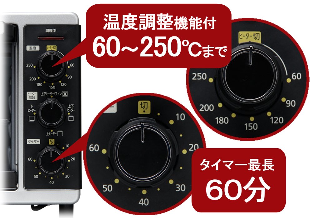 Since it has a temperature control of 60 to 250 ° C, keep food ingredients evenly heated to suppress uneven baking