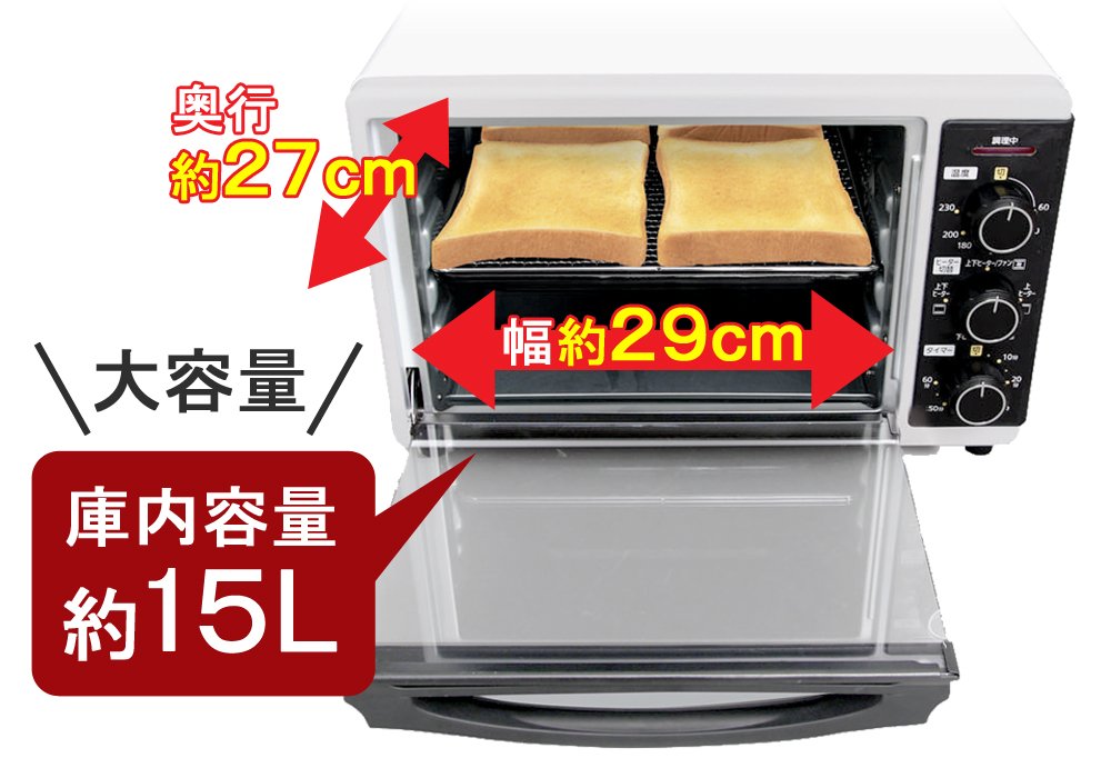 ● Inside size (approx): Width 29 × depth 27 × height 19.5 cm (between the upper and lower heaters)