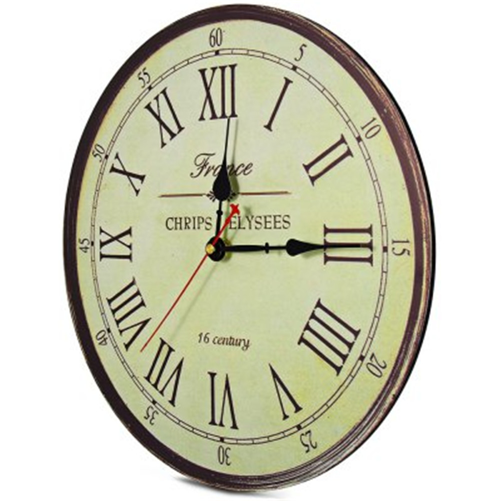 这是一个由木头制成的复古风格模拟挂钟。 这个时钟将增加你家中任何房间的魅力。 电池后面有一个塑料外壳。 这个时钟只需要一个AA电池(不包括在内)。