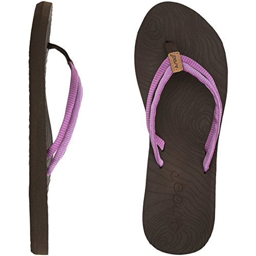 Webbing toe post. PU molded footbed with zen garden design. Supportive arch cookie. Flexible rubber outsole. Imported.