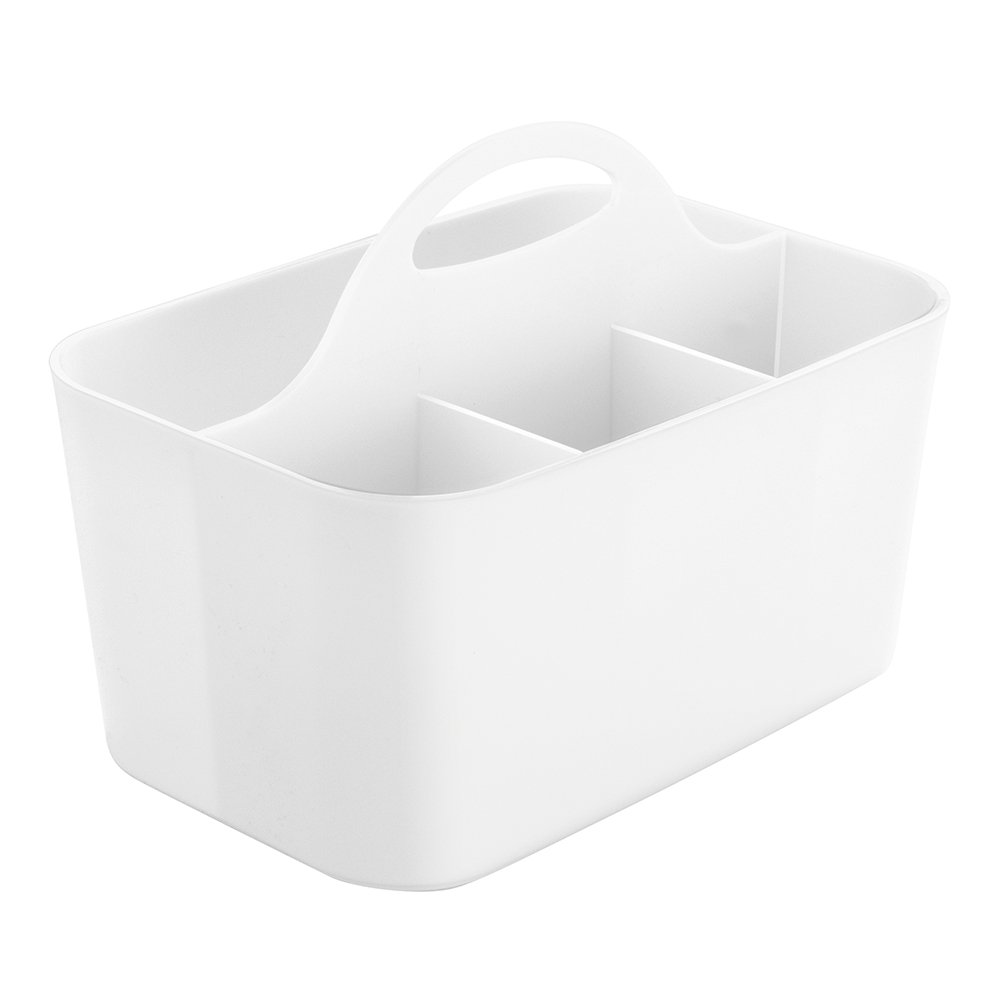InterDesign's Clarity Flatware Caddy has a compartment for storing napkins and flat wear and a built-in handle, and it also works for outdoor dining!