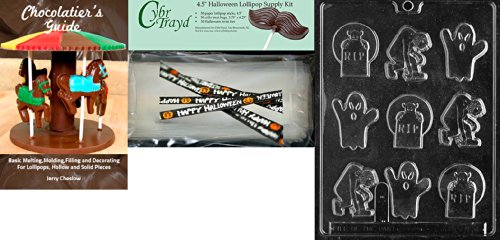 Cybrtrayd "Assorted with Rip" Chocolate Mold with Chocolatier's Bundle, Includes 50 Cello Bags and 50 Happy Halloween Twist Ties