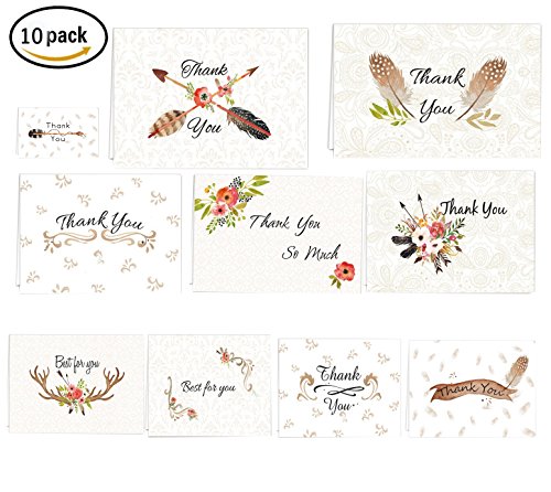 -. Feature : THANK YOU FOLDED CARDS : 10 different designs printed on high-quality white paper, cardstock blank insides for you to craft the perfect thank you! / THANK YOU STICKERS : the perfect addition to your thank you card+ ensure that you can seal your envelopes with ease! / SIMPLE & PRETTY: Colorful thank you cards in make the day brighter. glod envelopes and High Quality Seals included. / MEET ALL OCCASIONS: wedding, birthday, baby shower, party, graduation,baptism. perfect for any time you feel gratitude