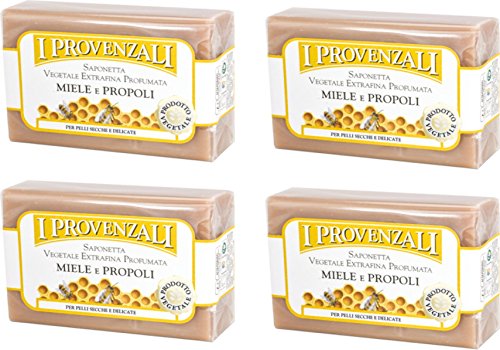 I Provenzali: "Miele e Propoli" Vegetable Perfumed Soap, Honey and propolis Scent 3.5 Ounce (100g) Packages (Pack of 4) [ Italian Import ]