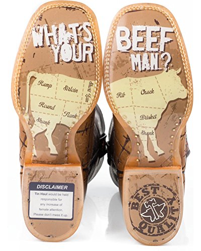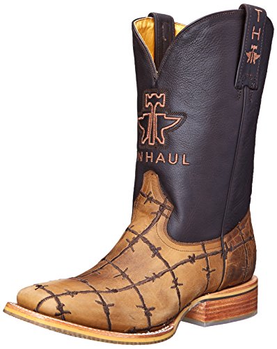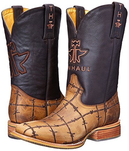 -. Binding : Apparel -. Brand : Tin Haul Shoes -. Color : Brown -. Department : mens -. Feature : Breathable leather lining / Clear obvious non marking outsole / What's your beef man obvious sole, tan vamp with chocolate shaft / 11 inch shaft / Double welt with roper heel -. IsAdultProduct : 0 -. Label : Tin Haul Shoes -. Manufacturer : Tin Haul Shoes -. Model : Bob Wire -. MPN : 14-020-0007-0081 BR -. PackageQuantity : 1 -. PartNumber : 14-020-0007-0081 BR -. ProductGroup : Shoes -. ProductTypeName : SHOES -. Publisher : Tin Haul Shoes -. Studio : Tin Haul Shoes -. Title : Tin Haul Shoes Men's Bob Wire Western Boot