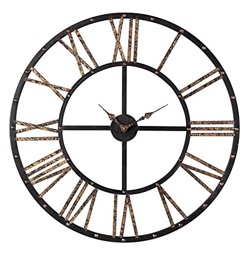 -. Title : Sterling 129-1024 Restoration Metal Framed Roman Numeral Open Back Wall Clock, 28 by 28-Inch, Mombaca Black/Gold