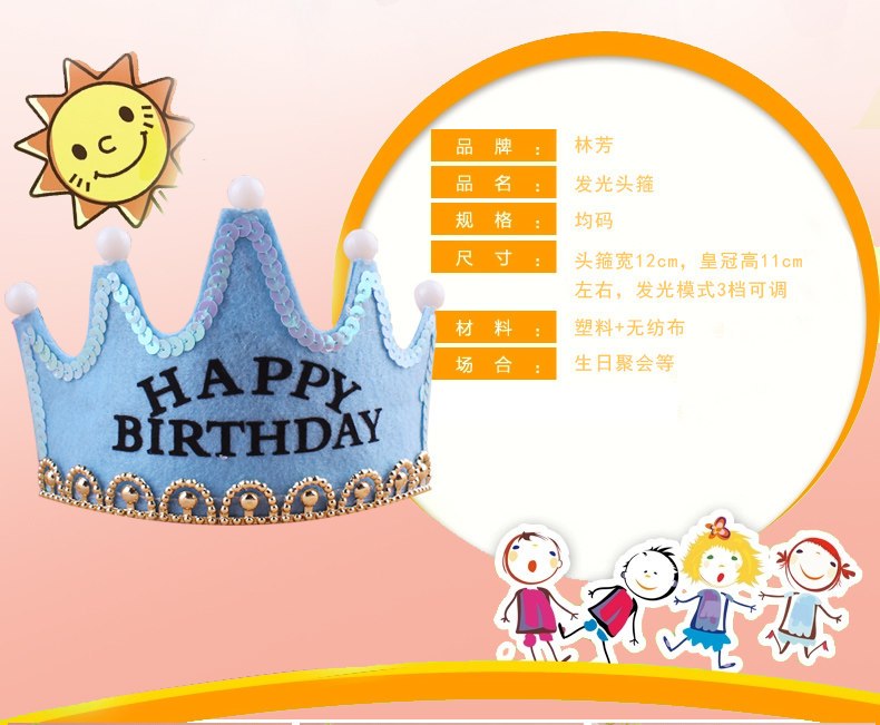 Size: head hoop is the pier hoop width 12cm, crown height of about 11cm, luminous mode 3 files can be adjusted