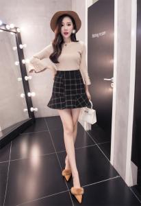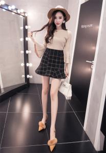 グレンチェック フィシュテール ミニスカート マーメイド 裾フレア 2017トレンド ウール プチプラ