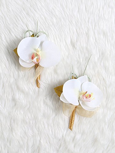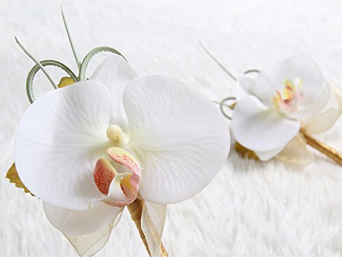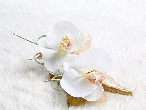 Tropical Boutonniere pin Phalaenopsis Orchids Wedding Prom Party (Gold Theme) (2pcs)