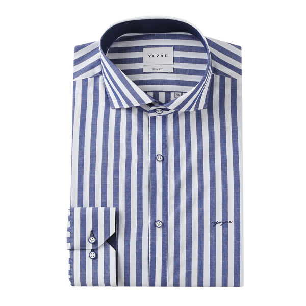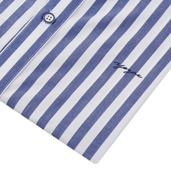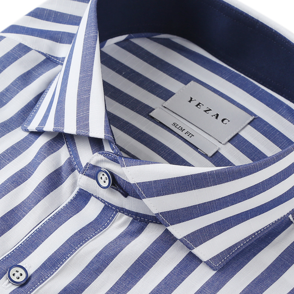 쿨린넨텍스쳐 와이드카라 슬림핏 스트라이프셔츠