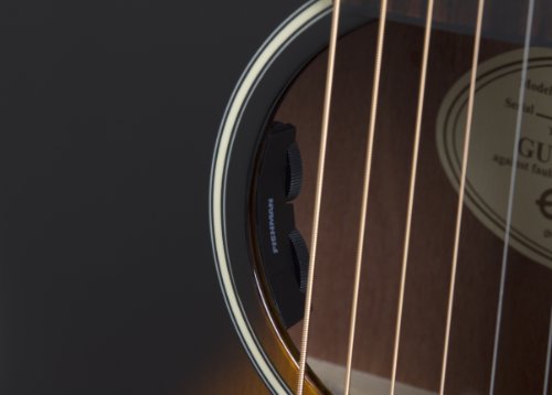 -. Feature : The neck is mahogany with the comfortable Slimtaper D profile and dovetail neck joint. / Nickel hardware with compensated saddle. / Fishman Sonitone shound-hole preamp with Master Volume and Master Tone.