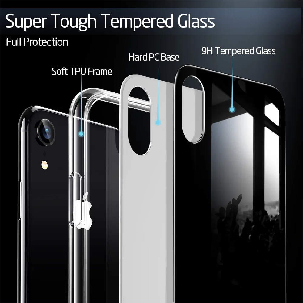 function 1:Tempered Glass Back Cover for iPhone XR XS XS Max