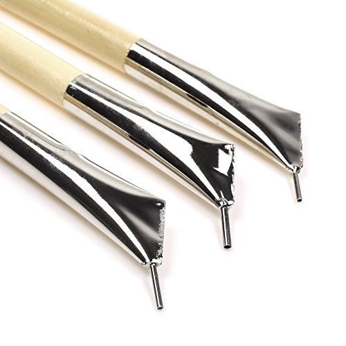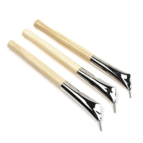 BCP Set of 3pcs Wood Handle Stainless Steel Printing Batik Knives Pens Pottery Clay Sculpture Wax Tools Set