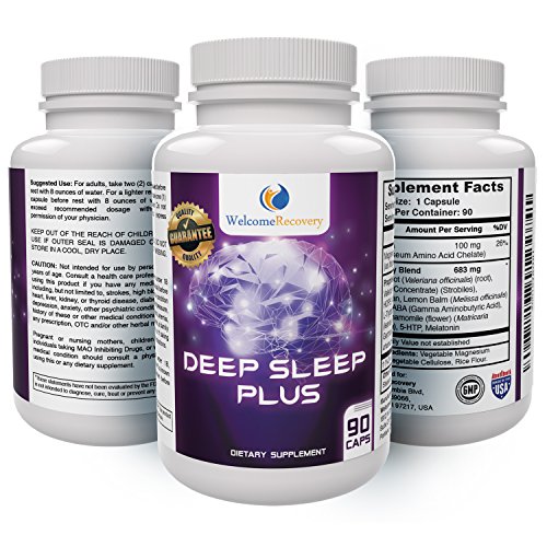 -. Binding : Health and Beauty -. Brand : Welcome Recovery -. EAN : 0646437547024 -. Feature : FALL ASLEEP FASTER: Avoid insomnia or sleep deprivation & fall asleep quickly with Deep Sleep Plus. / NON-HABIT FORMING: Deep Sleep Plus is made with natural, healthy ingredients free of side effects. / DEEPER SLEEP: Fall asleep and stay asleep only to wake up feeling refreshed & rejuvenated. / CALM & RELAXED: Deep Sleep helps calm racing minds, anxiety and stress so you can focus on rest. / GUARANTEE: If you don't absolutely love Deep Sleep Plus, return it within 30 days for a full refund. -. IsAdultProduct : 0 -. Label : PLSupplements -. Manufacturer : PLSupplements -. MPN : 29043-90-C -. PackageQuantity : 1 -. PartNumber : 29043-90-C -. ProductGroup : Health and Beauty -. ProductTypeName : HEALTH_PERSONAL_CARE -. Publisher : PLSupplements -. Studio : PLSupplements -. Title : Deep Sleep Plus Natural Sleep Aid by Welcome Recovery - Non-Habit Forming Sleeping Pill - Valerian Root, Melatonin & Chamomile - Get to Sleep Fast, Stay Asleep All Night -. UPC : 646437547024