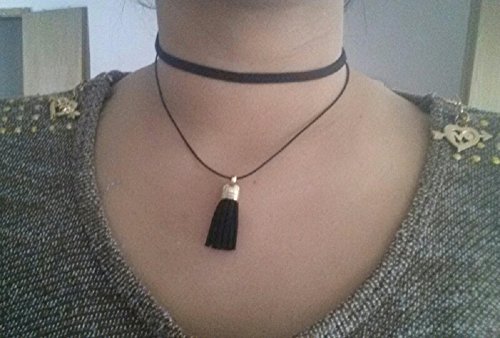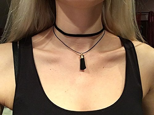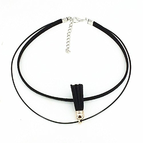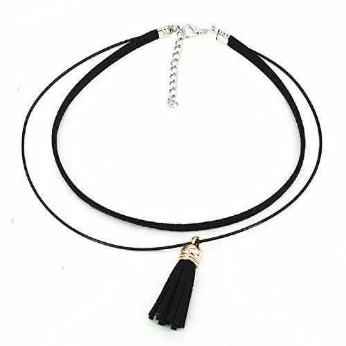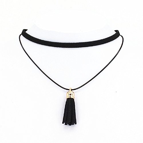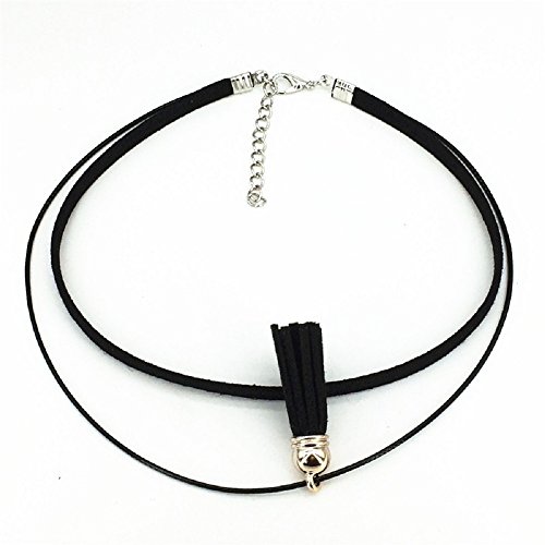 Hot new torques Bijoux Plain Black Velvet Ribbon tassel statement necklace pendant Maxi Multilayer Chokers Necklace women (Zinc Alloy)