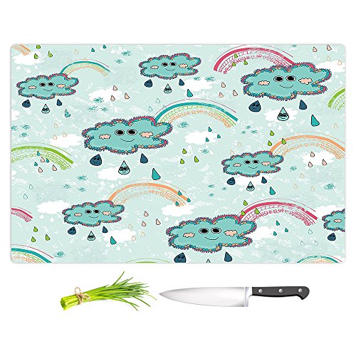 DiaNoche Designs CB-MetkaHitiRainbowCloudsBlue1 Artist Metka Hiti-Rainbow Clouds Blue Cutting Boards from, Small 11" x 8"