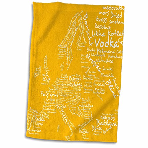 3D Rose Mustard Yellow Typography Map of Europe Composed of Names of World Dishes and Foods twl_57522_1 Towel, 15" x 22"