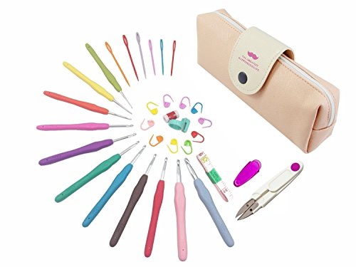 Comecase Ergonomic Precise Crochet Hooks 31pcs Kits with 11 Aluminum Crochet Hooks and All the Accessories Needed in 1 PU Leather Convenient Carrying Case