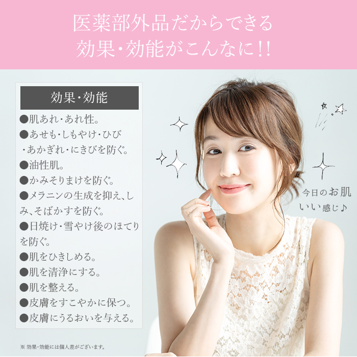 | 使用上の注意 | ・お肌に異常が生じていないかよく注意してご使用ください。 ・傷、はれもの、湿疹等異常のある部位にはご使用にならないでください。 ・使用中や使用後に赤み、はれ、かゆみ、刺激、色抜け(白斑等)や黒ずみ等の異常が現れた時は、使用を中止し、皮膚科専門医等へご相談されることをおすすめします。 |