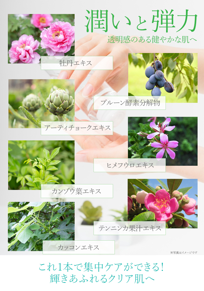 | 全成分 | <有効成分> 水溶性プラセンタエキス、グリチルリチン酸2K <その他の成分> プルーン酵素分解物、アセチルチロシン、エクトイン、テンニンカ果汁エキス、カンゾウ葉エキス、水解コラーゲン末、ヒアルロン酸Na-2、アーティチョークエキス、ヒメフウロエキス、牡丹エキス、カッコンエキス、スクレロチウムガム、グリコシルトレハロース・水添デンプン分解物混合溶液、濃グリセリン、キサンタンガム、BG、カルボキシビニルポリマー、水酸化K、1,2-ペンタンジオール、フェノキシエタノール <効果効能> 肌あれ・あれ性。 あせも・しもやけ・ひび・あかぎれ・にきびを防ぐ。 油性肌。 かみそりまけを防ぐ。 メラニンの生成を抑え、しみ、そばかすを防ぐ。 日焼け・雪やけ後のほてりを防ぐ。 肌をひきしめる。肌を清浄にする。肌を整える。 皮膚をすこやかに保つ。皮膚にうるおいを与える。 |
